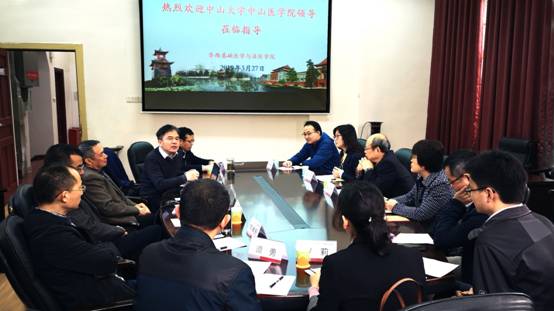 3月27日上午8点30分,中山大学中山医学院党委书记吴忠道教授一行八人来我院访问并就党建、师资队伍建设、人才培养等工作进行调研。学院党委书记李昌龙教授,院长黄灿华教授,郭晓伟副书记,副院长方定志教授,教授委员会主席刘肖珩教授及相关老师出席座谈会,座谈会在华西第五教学楼会议室举行。