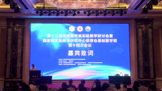 2019年7月27至28日,由四川大学和成都医学院共同承办的“第十二届全国医学类实验教学研讨会暨国家级实验教学示范中心联席会基础医学组第十四次会议”在成都胜利召开。来自全国近120所高校的专家、教师500余人参加了本次会议,会议由高等学校国家级实验教学示范中心基础医学组联席会主席董为人教授主持。四川大学副校长梁斌教授、四川省教育厅高教处高波同志、四川大学教务处副处长李华教授、四川大学设备处副处长夏建刚教授、四川大学华西基础医学与法医学院党委书记李昌龙教授、四川大学华西基础医学与法医学院副院长梁伟波教授出席,华西医学基础实验教学中心的相关人员也参加了本次会议。