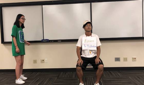 在小组展示中,同学们分为四个小组,在亚利桑那州州立大学学生志愿者的协助下,发现并选定一个与人类健康相关的问题,并基于此设想出解决此问题的创新方案。同学们围绕自己选定的问题,展开了激烈的讨论,并积极地为进行创新想法的展示做准备。讨论气氛十分活跃。