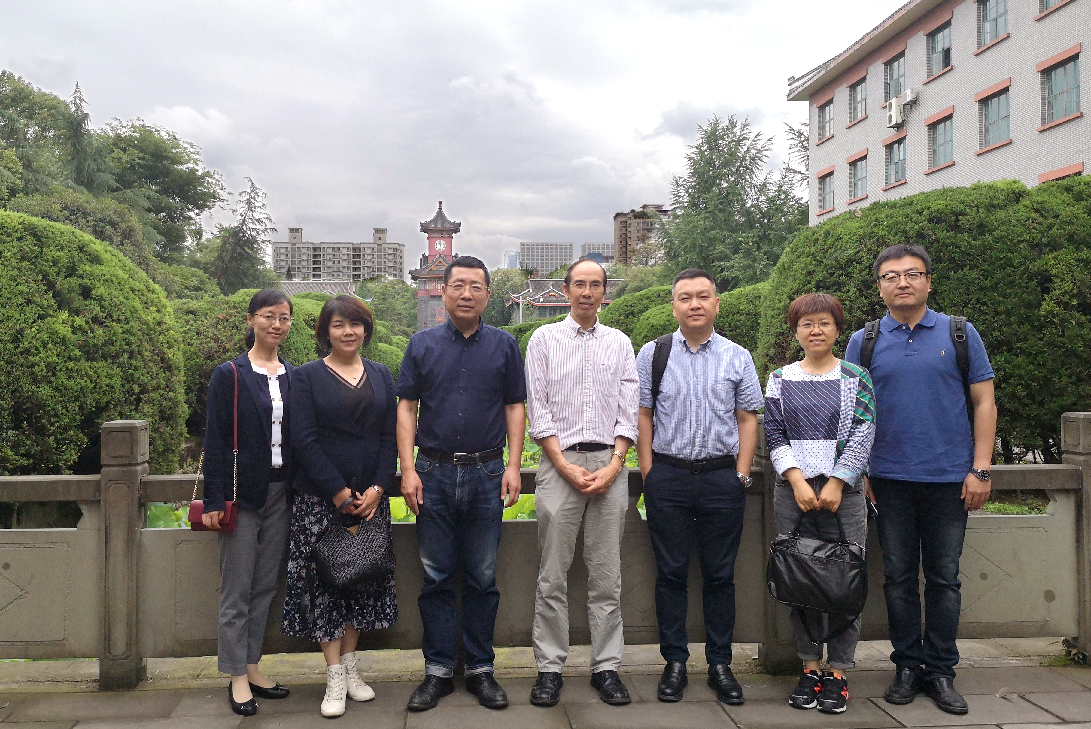 最后,走出调研会议室,来到我校获得全国教学成果特等奖,开展“探究式—启发式小班化教学”的华西第九教学楼智慧教室参观,并在历史悠久的美丽华西校院留影。