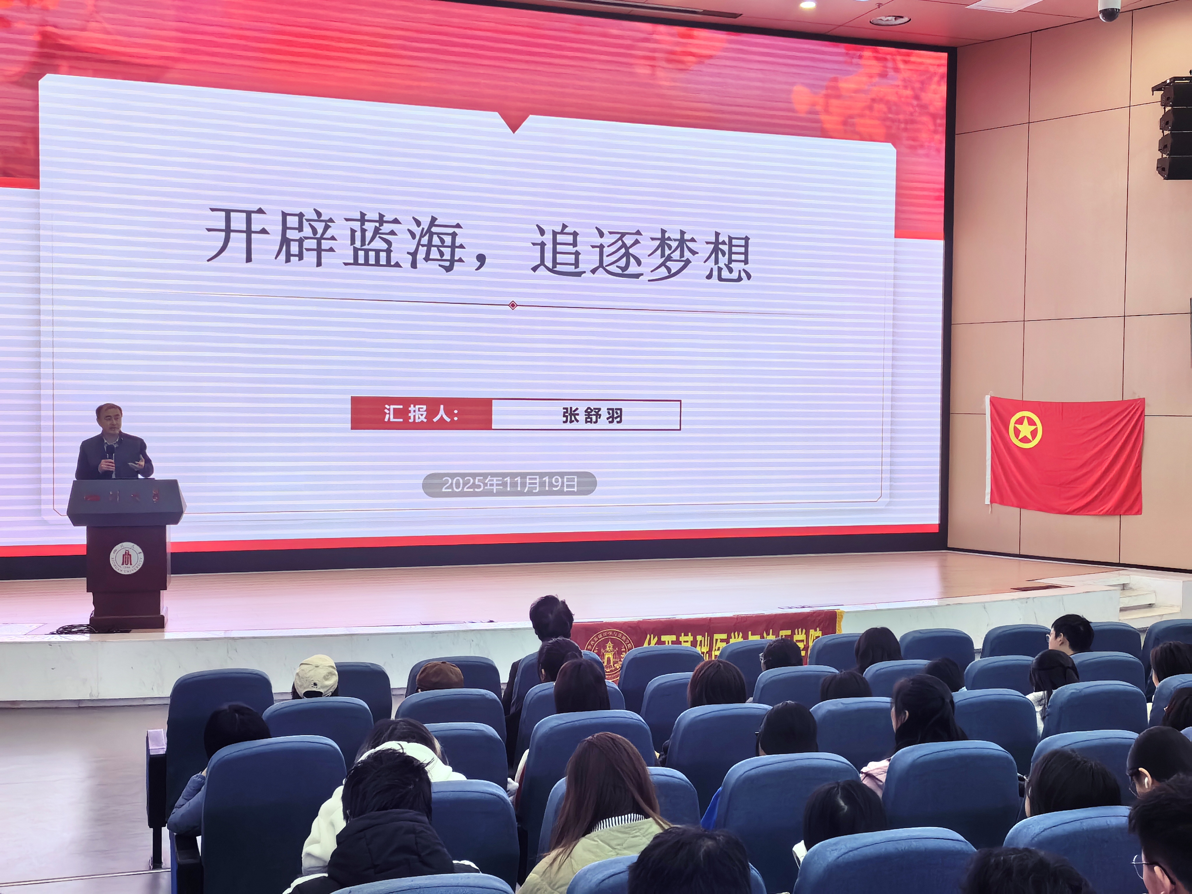 11月19日下午,由四川大学华西基础医学与法医学院主办的第二十三届团校第二次行课于江安校区第一教学楼A座水上报告厅举办。本次行课邀请学院副院长张舒羽教授主讲,专职组织员郑风劲老师、分团委书记董晓爱老师、以及2025级全体同学参加了本次活动。