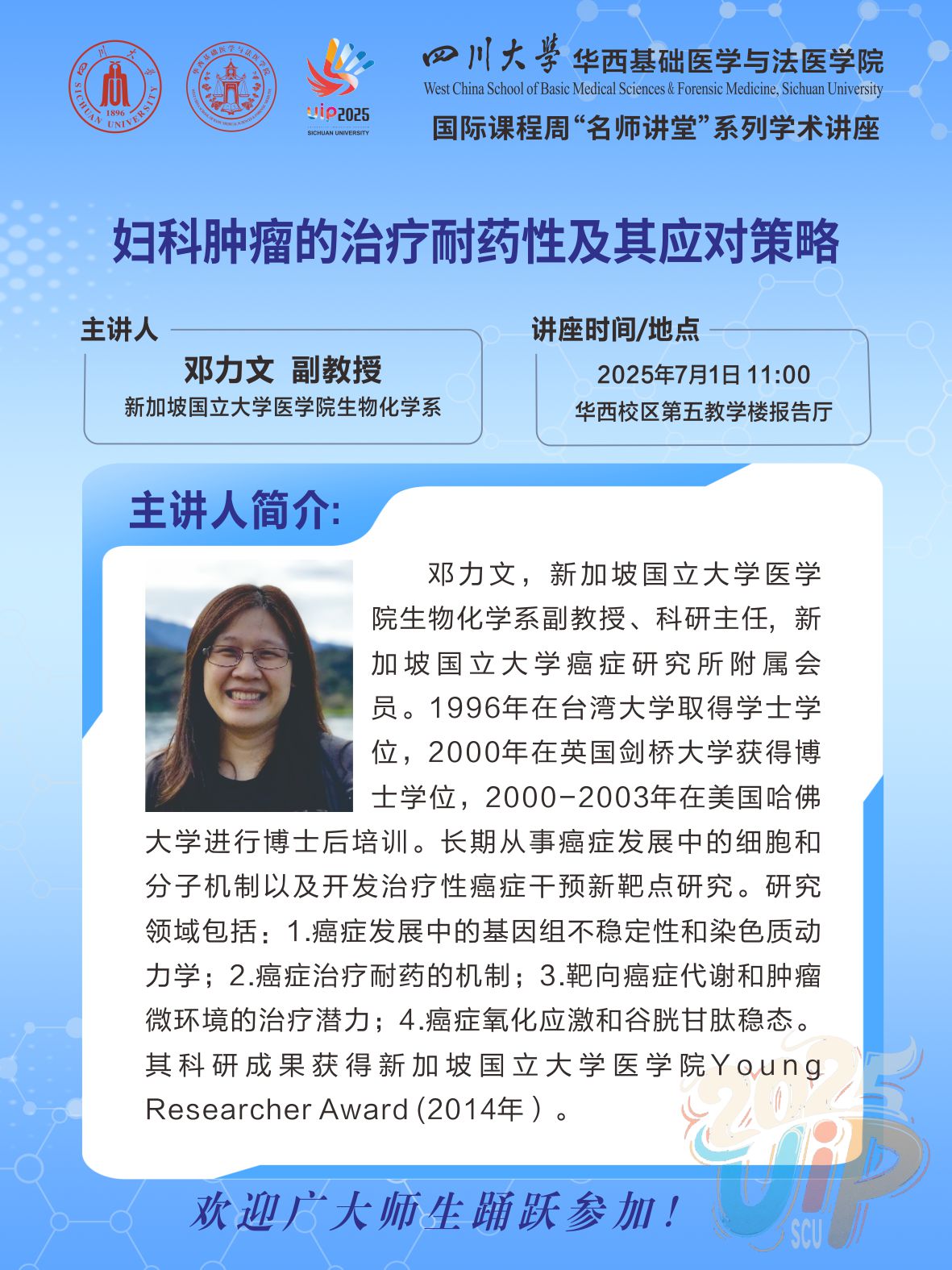 【2025年国际课程周“名师讲堂”系列学术讲座】妇科肿瘤的治疗耐药性及其应对策略