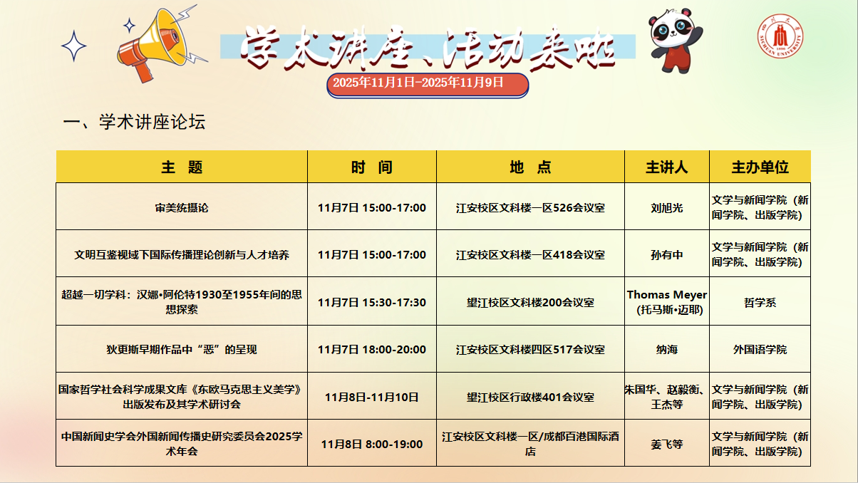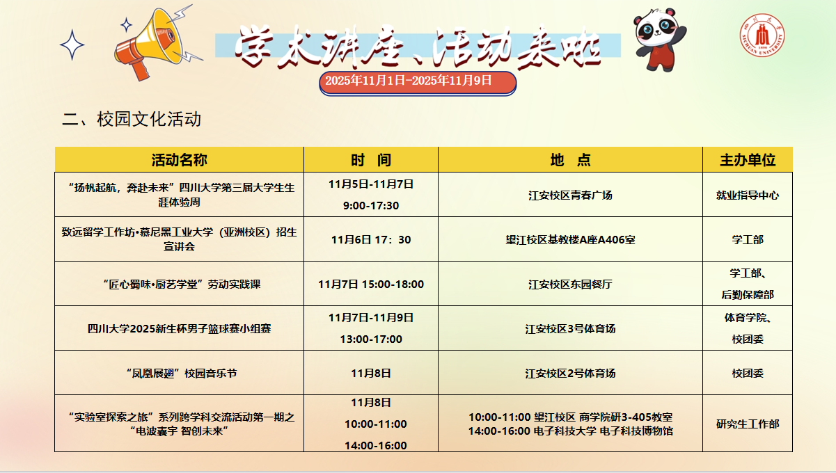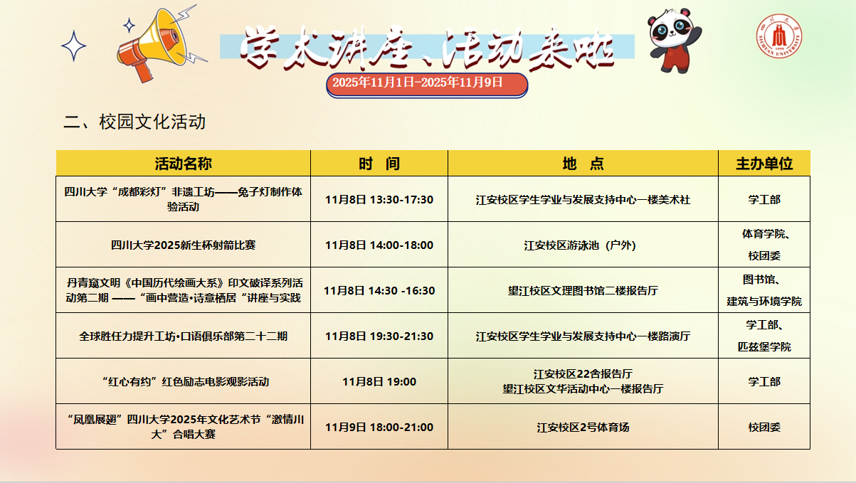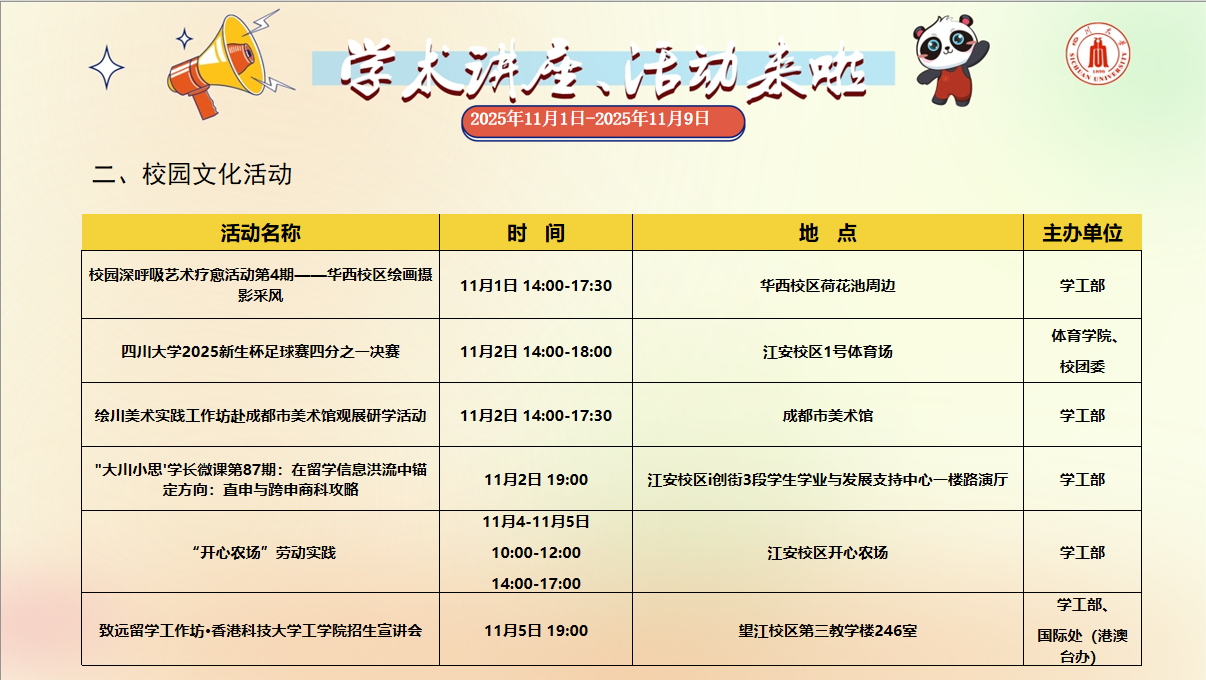 四川大学校园文化活动预告(2025年11月1日-11月9日)