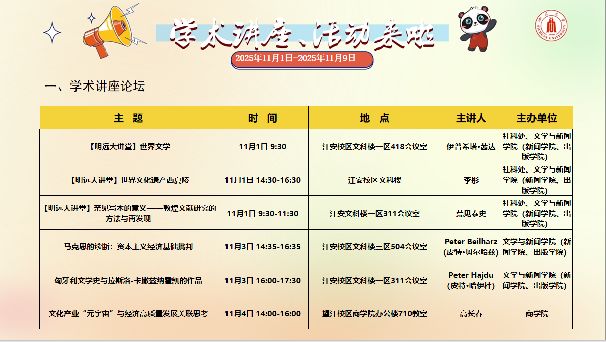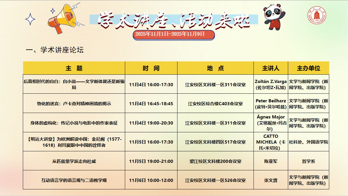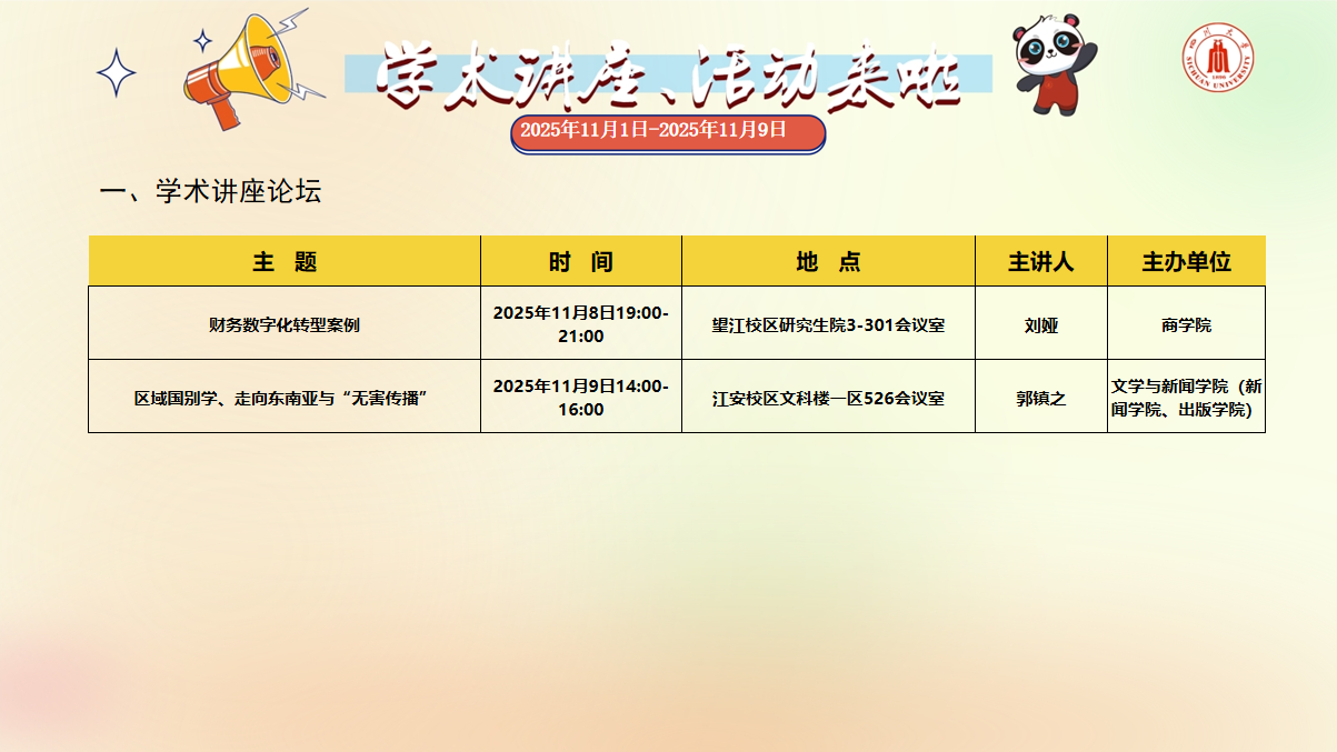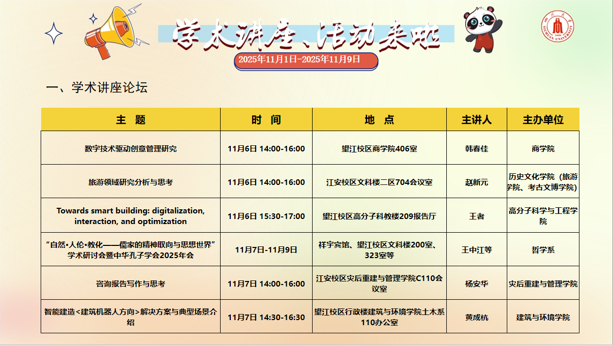 四川大学校园文化活动预告(2025年11月1日-11月9日)
