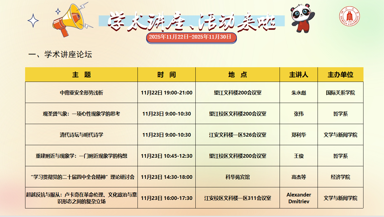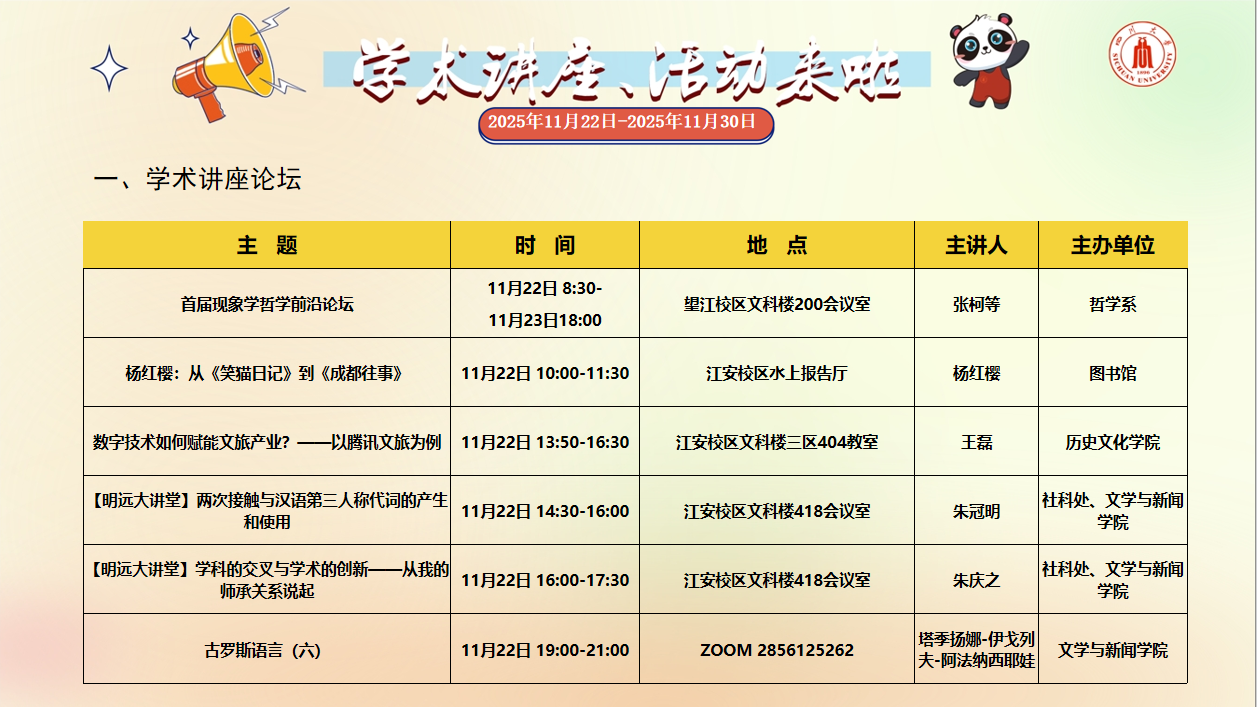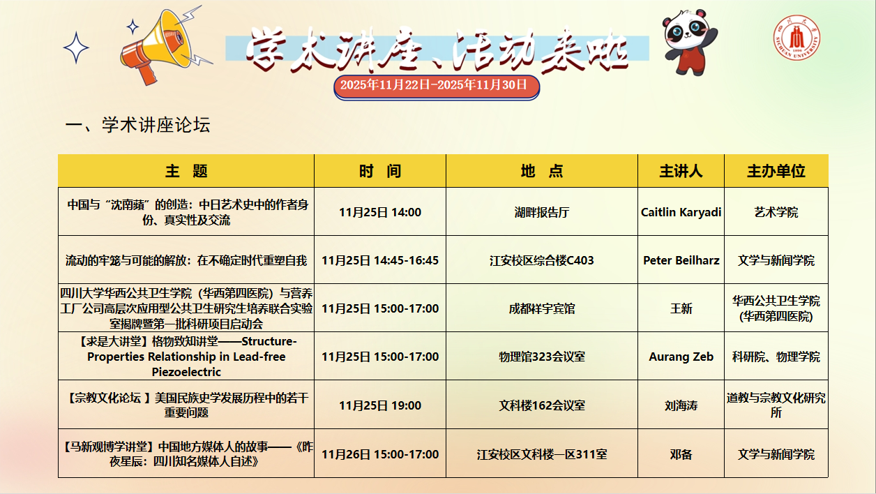 四川大学学术讲座论坛、校园文化活动预告(2025年11月22日-11月30日)