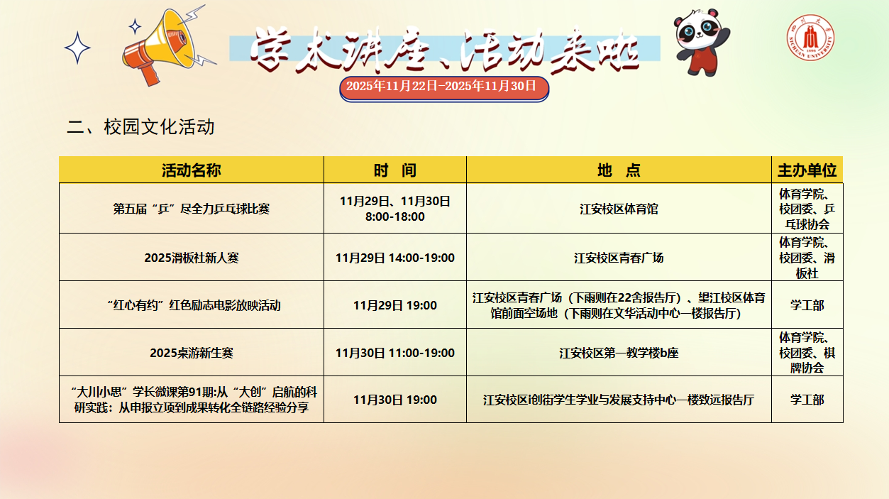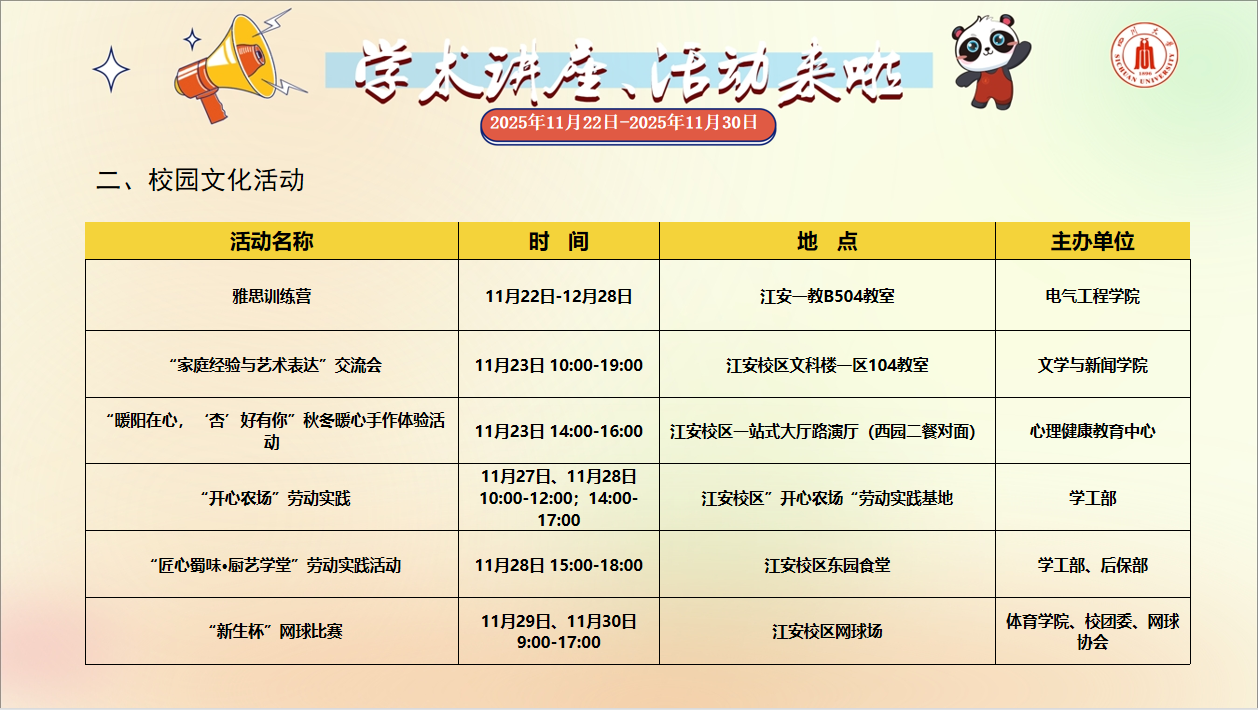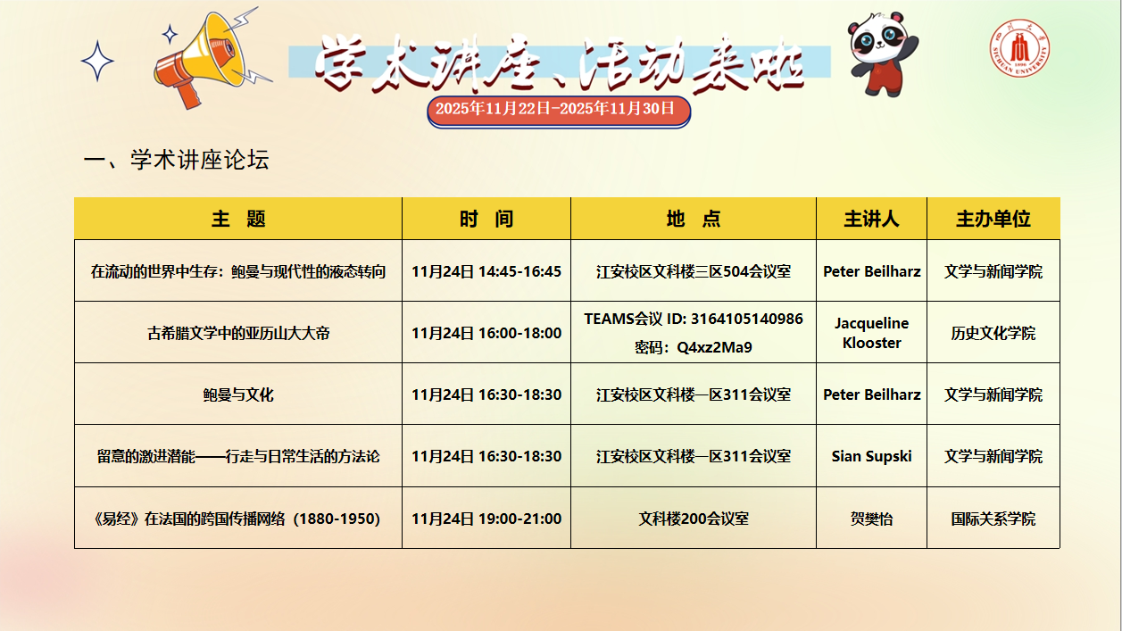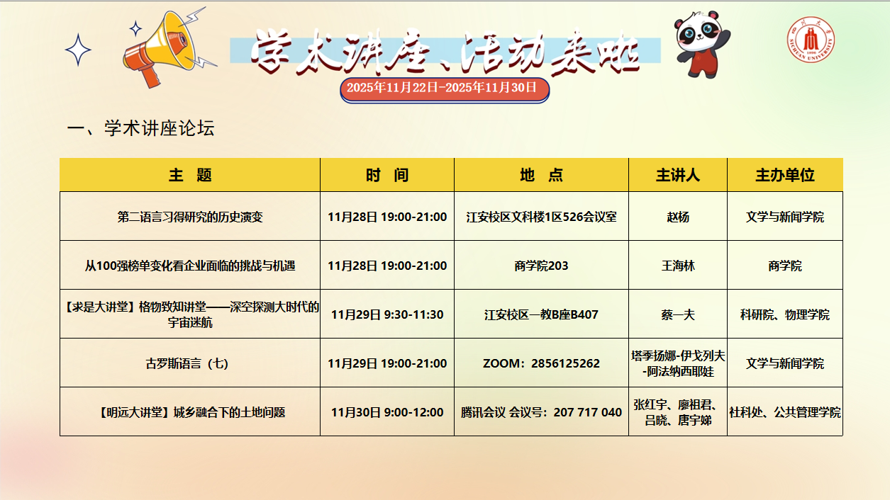 四川大学学术讲座论坛、校园文化活动预告(2025年11月22日-11月30日)