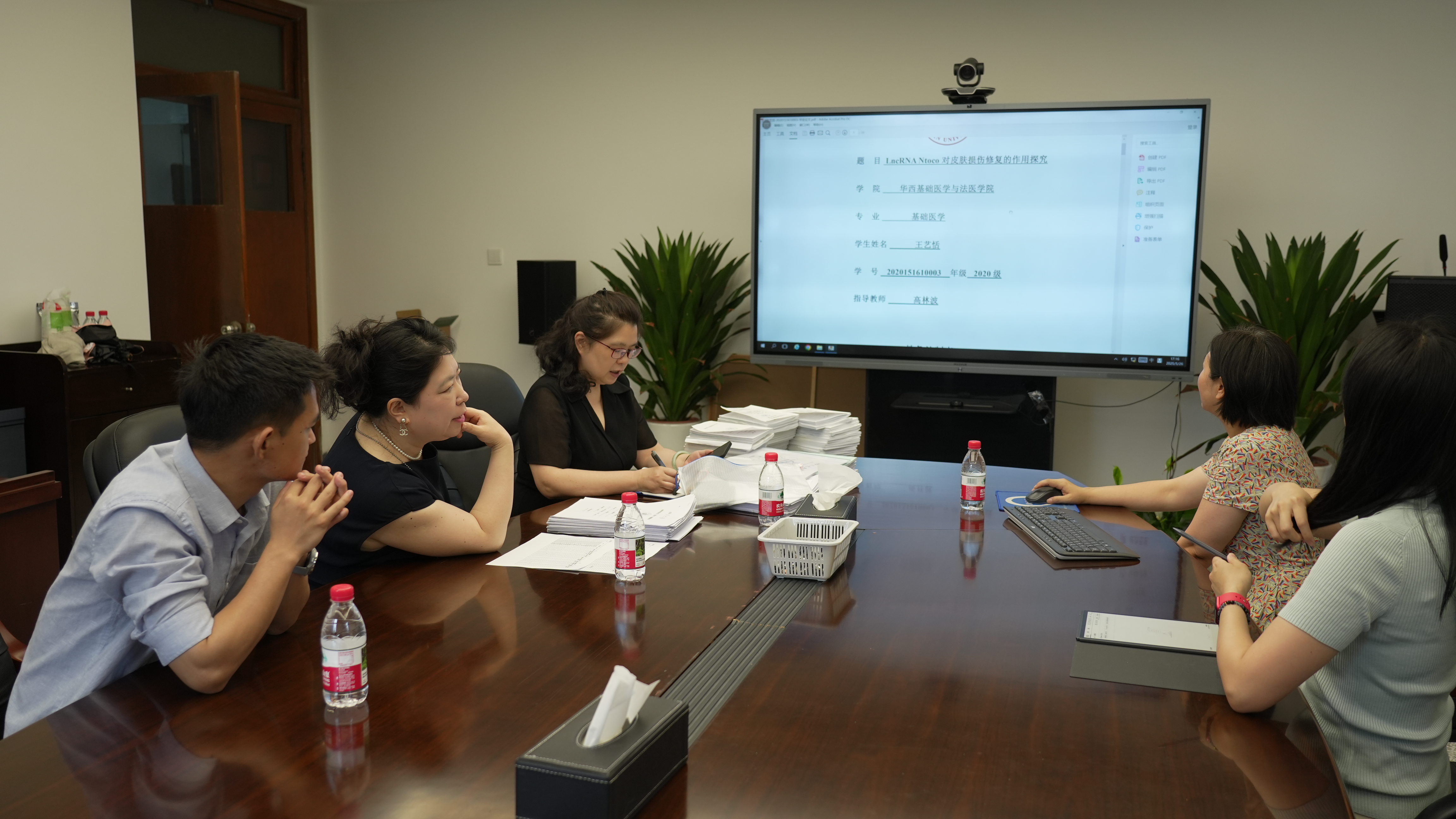 在“四川大学AI赋能创新实践教育大讨论暨创新实践教育质量月”活动背景下,学校组织开展校级本科毕业论文(设计)巡检工作。5月26日下午4点,华西口腔医学院巡查组专家岳莉教授及专家组秘书在逸夫楼229会议室就我院2025届本科毕业论文(设计)进行质量检查工作。