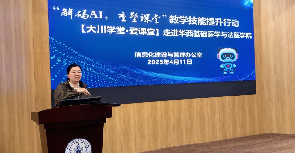 为深化本科教育教学改革,持续推进一流本科教育教学发展大讨论有关工作。4月11日下午2:30,我院在华西校区第五教学楼报告厅召开AI深度赋能一流本科建设行动研讨会。会议邀请了学校信息化建设与管理办公室王春艳、田建林做了关于大川学堂教学平台运用的报告,我院法医临床学教学团队代表刘渊老师、组织学与胚胎学教研室彭谨老师分别就人工智能赋能教学做了分享交流。学院党委书记李华、副书记兼副院长罗海玻、教学副院长梁伟波出席了会议,学院教师参加了会议,会议由教学科科长肖世维主持。