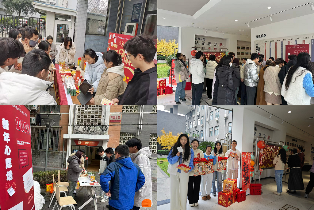 活动在四川大学华西逸夫基础教学楼、华西校区东十舍、江安校区西园四舍同步开展。迎新年活动包括“新年许愿”“礼品传递”“贺卡交换”以及“新年谜语猜猜猜”等互动环节,吸引了众多师生参与,在温馨、欢乐、团结的节日氛围中共同分享喜悦、寄语未来。
