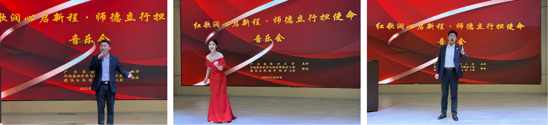 为深化师德师风建设、传承红色文化基因,9月29日,我院工会与产业集团分工会、建筑与环境学院分工会联合举办的“红歌润心启新程・师德立行担使命”主题红歌音乐会在四川大学科技创新中心二楼演播厅举行。校工会副主席吕海涛、学院党委副书记罗海玻及三单位教职工参加。