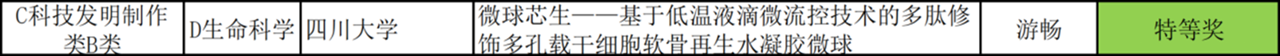 5月24日-26日,第十八届“挑战杯”四川省大学生课外学术科技作品竞赛在成都医学院举行。我院“微球芯生——基于低温液滴微流控技术的多肽修饰多孔载干细胞软骨再生水凝胶微球”项目团队,斩获省级特等奖,创我院在该赛事历史最佳成绩。