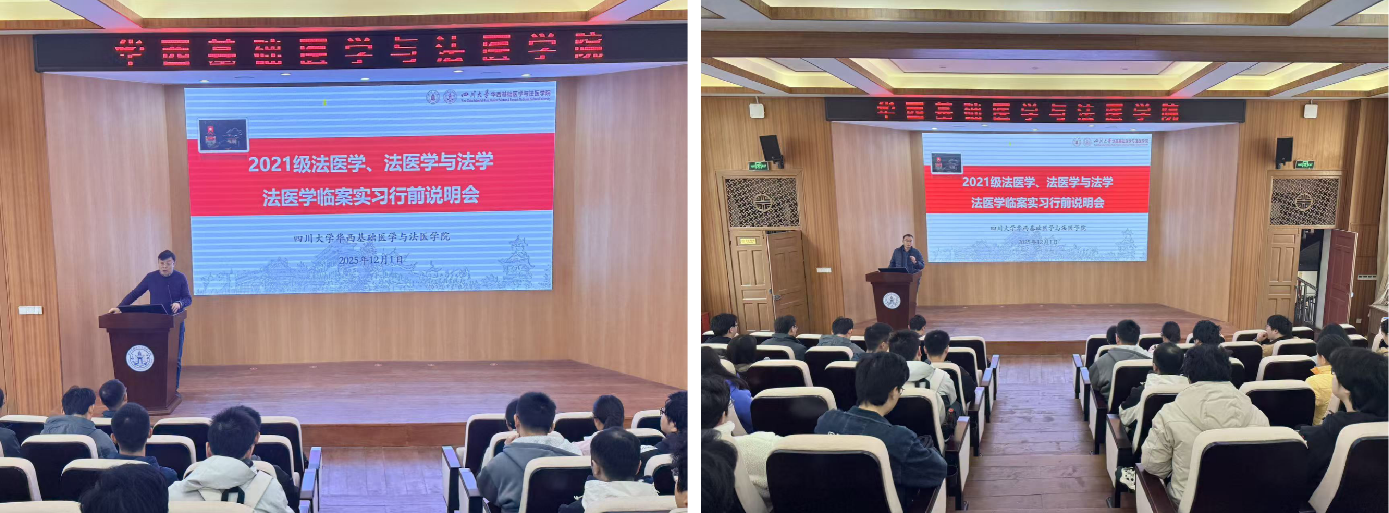 12月1日上午,我院在第五教学楼报告厅召开2021级法医学专业临案实习安全教育与动员会。院长梁伟波教授、党委副书记罗海玻教授出席会议并作动员讲话,全体2021级法医学(含双法班)学生参加。会议由教学科科长肖世维主持。
