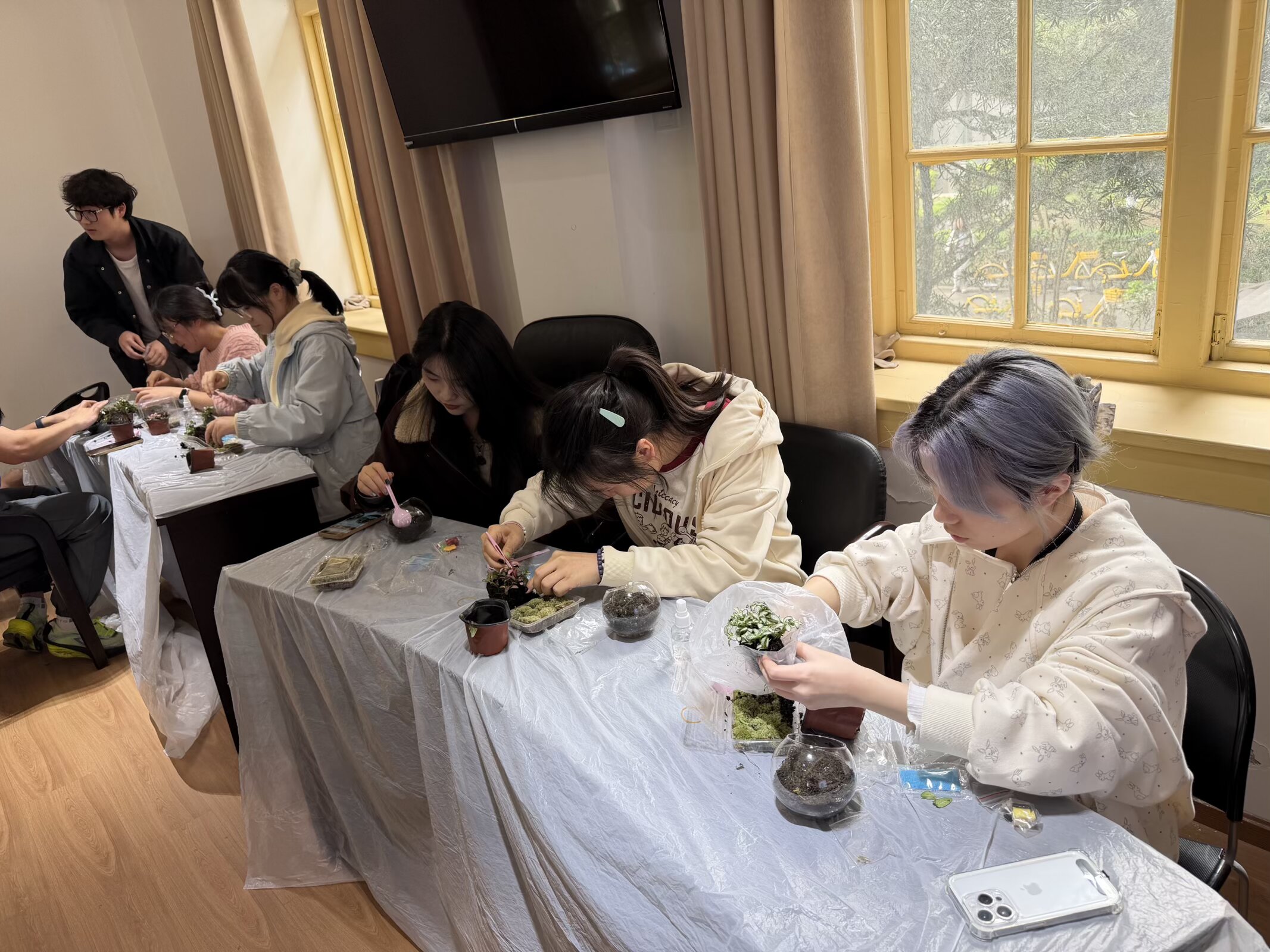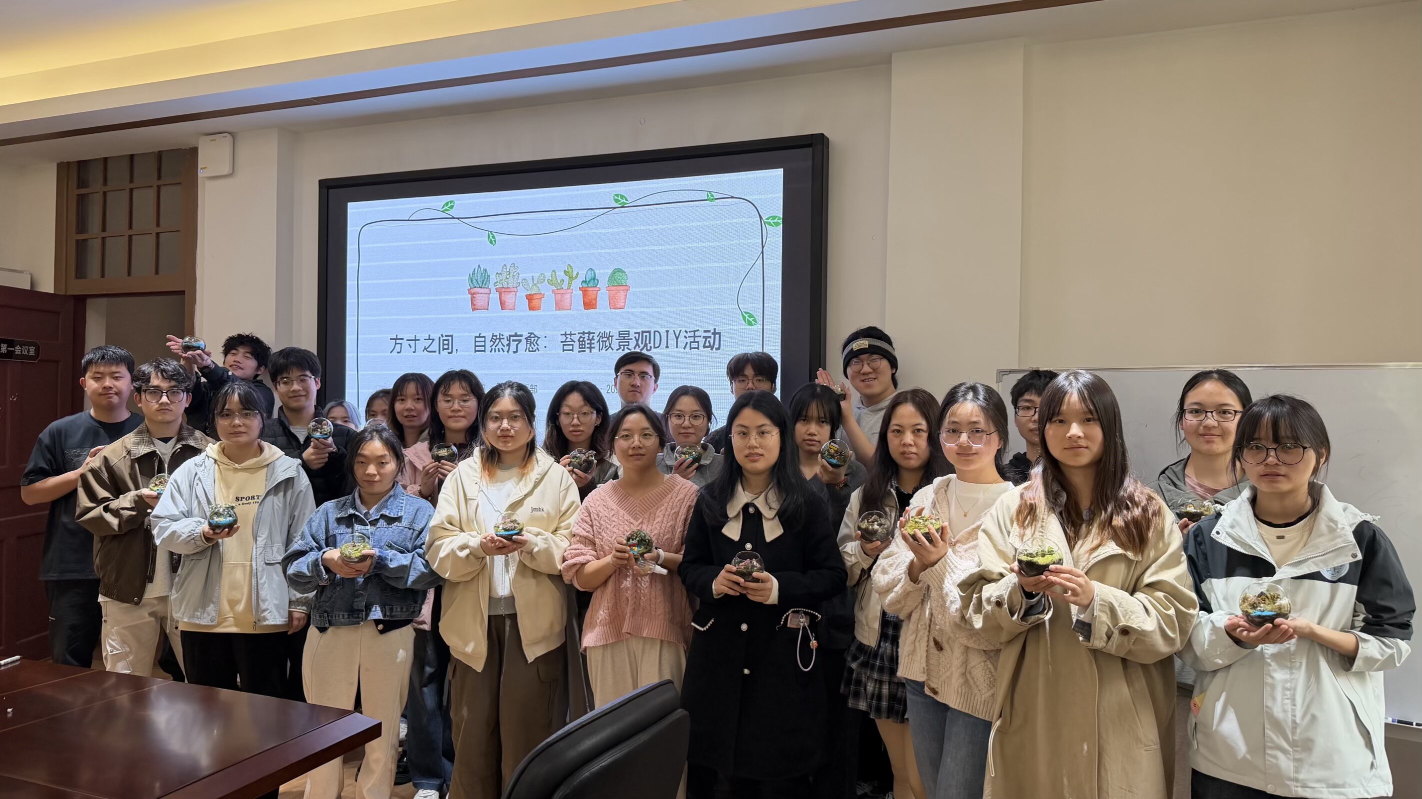 践行“以美润心”理念,让美育浸润与心理关怀相融相生。为创新研究生心理健康教育形式,帮助同学们在学习与科研之余舒缓压力、疗愈身心,3月27日下午由学院研究生会党建引领部主办的“525”心理系列活动之“方寸之间,自然疗愈”苔藓微景观DIY在华西五教第一会议室温馨举行。活动吸引了来自各年级的学生共30人参与。